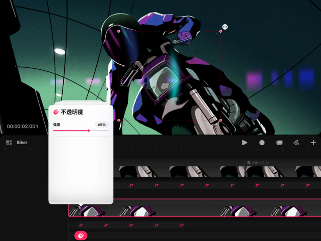 どこからともなくお化けを登場させたり、シースルーのカーテンから外が見える様子を表現したりしてみましょう。不透明度 を使うと、タイムライン全体でオブジェクトの透明度を変化させることができます。
