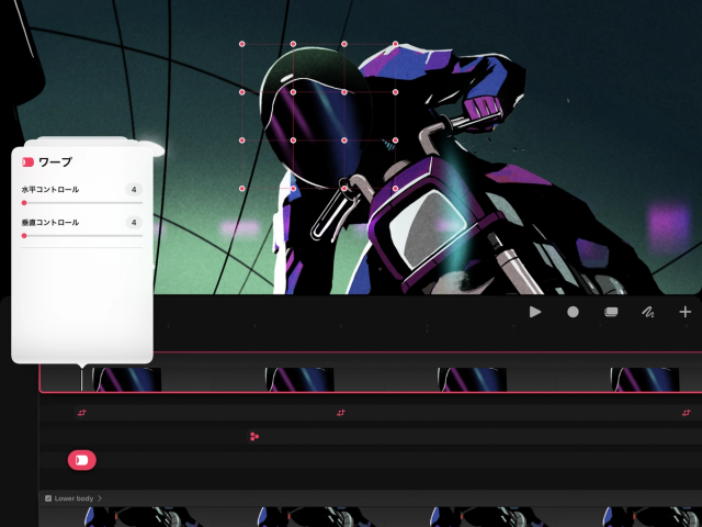 ワープ キーフレームを設定してから、ワープメッシュの任意のノードをドラッグし、コンテンツをワープさせます。