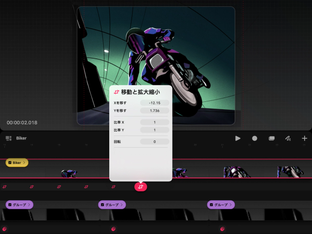 コンテンツに追加できるキーフレームとその種類の数に制限はありません。また、既存のキーフレームをタップすれば、いつでもそのパラメータを調整し直すことができます。