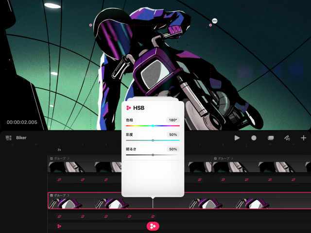 HSBキーフレームを設定し、以下の操作を行います。