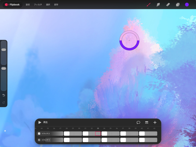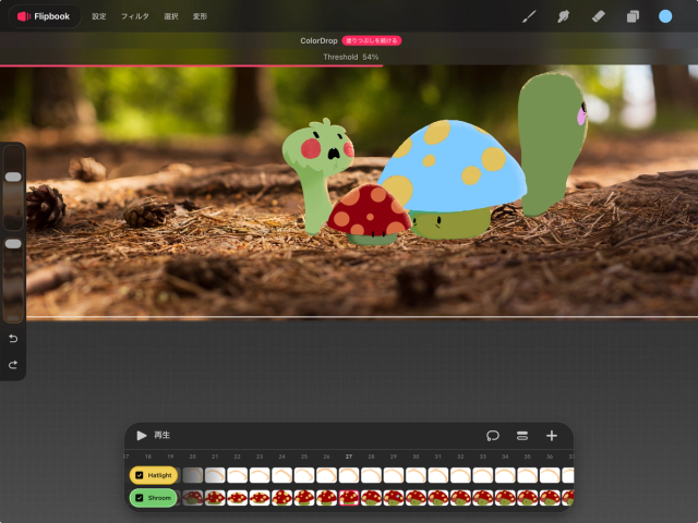 長押ししながらタップを繰り返すと、塗りつぶしごとにしきい値を調整できます。「塗りつぶしを続ける」間に、カラーの変更もできます。