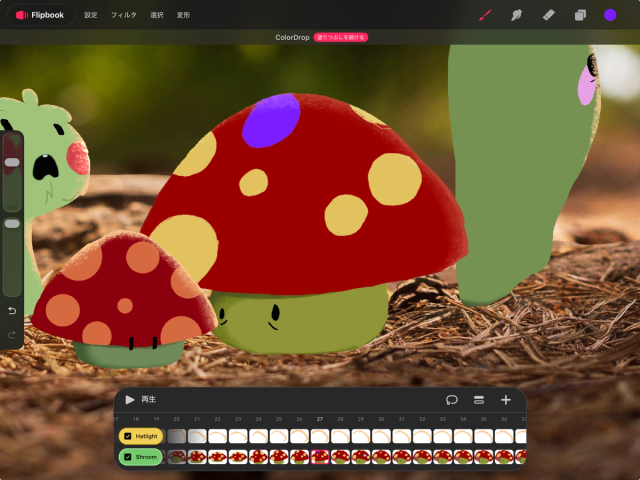 ColorDrop の横にあるチェックマークをタップして、「塗りつぶしを続ける」モードを終了します。