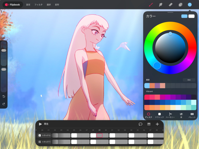 「カラー」は、Flipbook または「描画」での作業中に利用可能な「描画 & ペイント」モードでのみ使用できます。