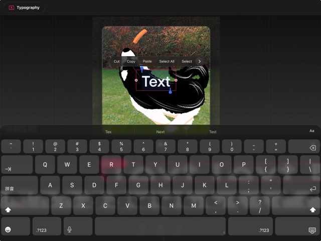 Tap the Keyboard at any time to adjust or add more type to your text box.