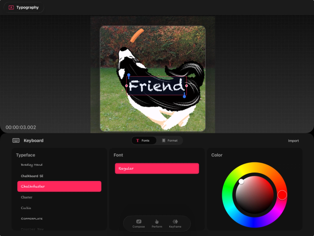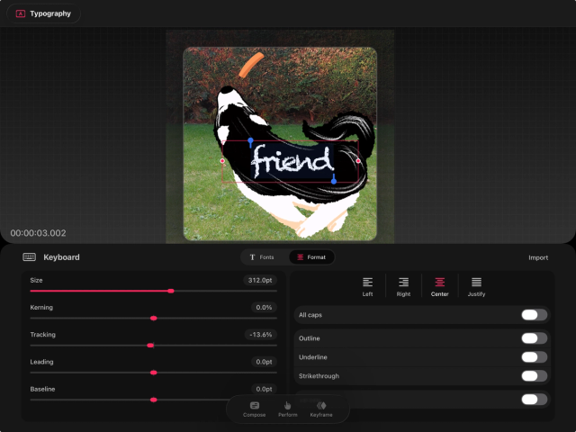 You can add keyframes to alter and animate your text like other types of content in Procreate Dreams. You can also go back and change your text after adding keyframes.