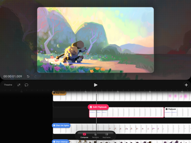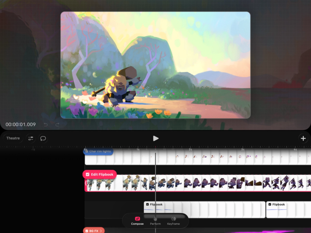 Tracks contain the content used to create your movie. This can be imported files such as images, video, and audio, or content created in Procreate Dreams such as Flipbooks, drawings, and text.