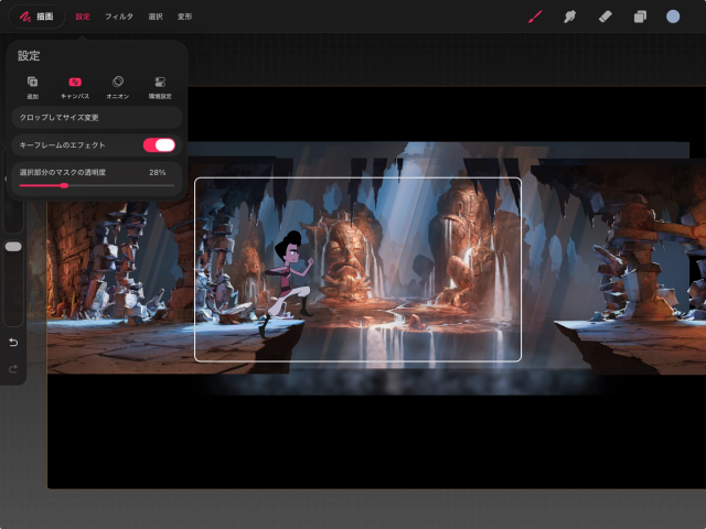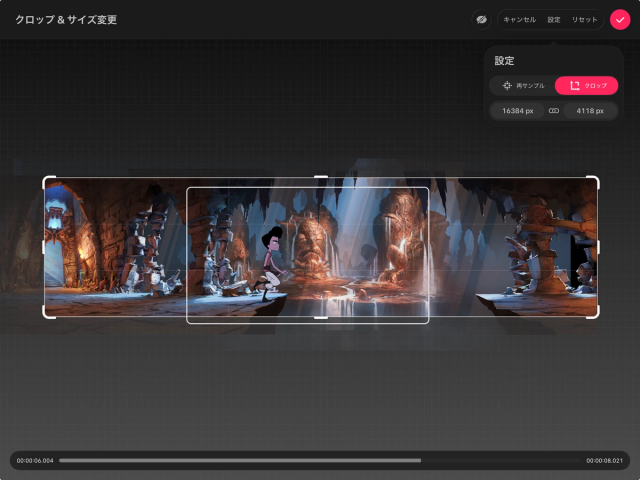 ここをタップして変更を確定すると、クロップが実行されます。キャンバスのサイズ、使用しているデバイス、プロジェクトの複雑さによっては、処理に時間がかかる場合があります。