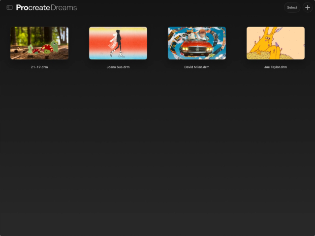 When first opening Procreate Dreams you begin in the Theater. Here you can create, open, and share your movies.