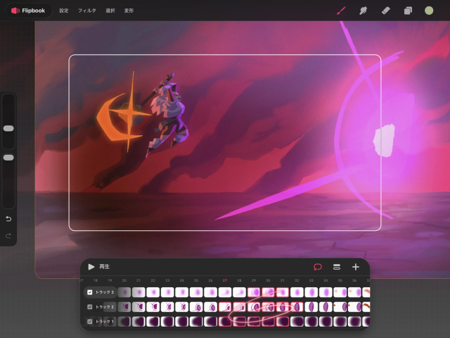 Apple Pencil がなくても、Flipbook で複数のフレームを個別にタップすることで「マルチセレクト」を適用し、編集できます。