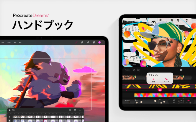Procreate Dreams の機能とその使い方は、このハンドブックをご活用ください。最初から最後まで読むもよし、リンクを次々にクリックして探索しても。特定のセクションで機能の概要を参照したり、検索して答えやヘルプ記事をすばやく見つけたり、という使い方もできます。