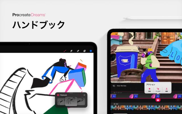 このハンドブックを使って、Procreate Dreams の多彩な機能とその効果を見つけてください。使い方は自由です。最初から最後まで目を通す方法も興味のあるリンクをクリックする方法も、個々にあった使い方が可能です。ある一部の機能について詳しく知りたい場合は、関連セクションを参照してください。検索機能を使用すれば、答えをいち早く見つけることもできます。