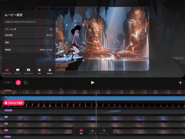 ここをタップすると、ダイアログが表示されて、ムービーを再生するフレーム / 秒(FPS)を選択できます。