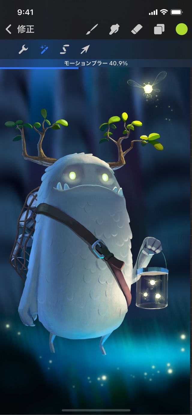 変更を確定して “モーションブラー” を表示したままにするには、キャンバスをタップして “調整アクション” を呼び出し、“適用” をタップします。