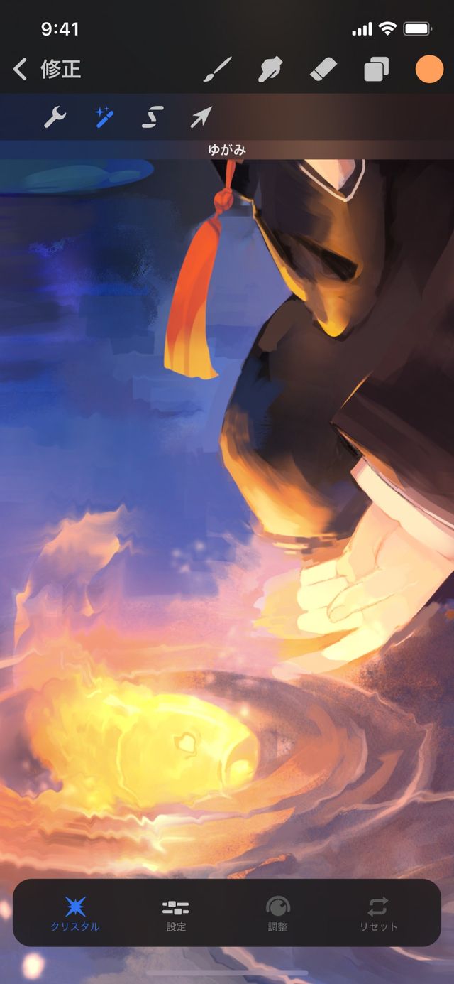 “リセット” をタップすると、変更内容が取り消され、ゆがみインターフェイスのままになります。