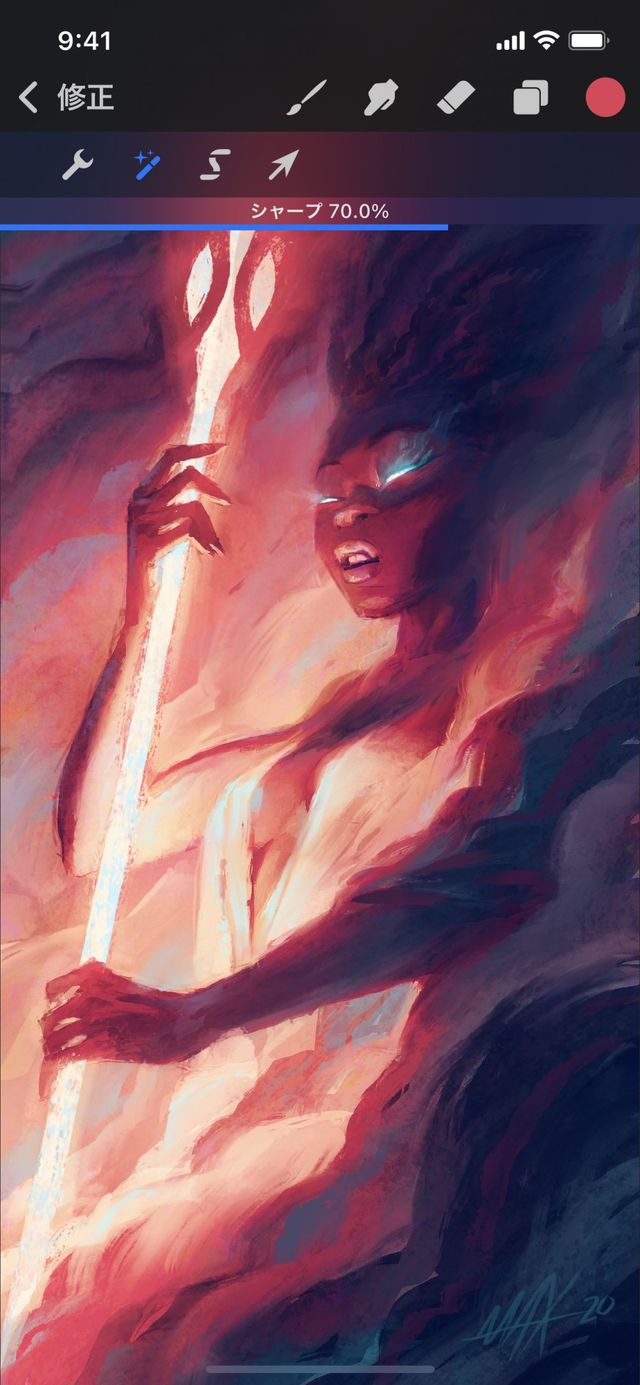 修正 > 調整 > エフェクト > シャープ をタップして、シャープのインターフェイスを呼び出します。