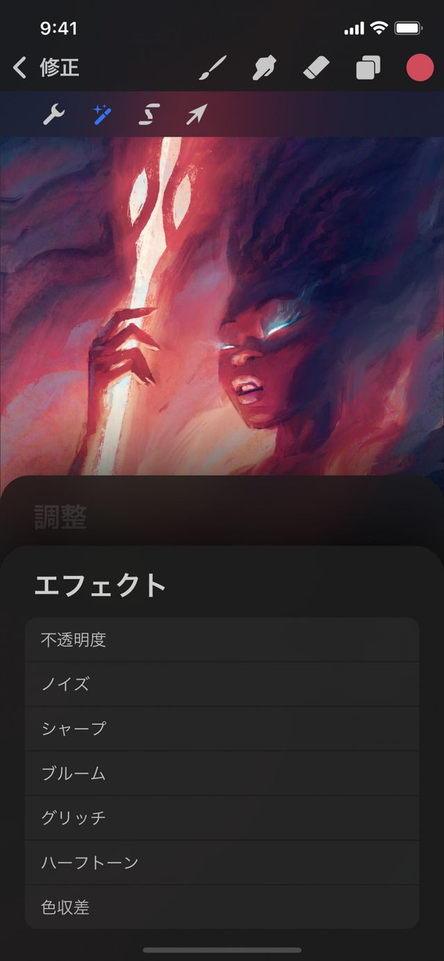 変更を確定して調整を終了するには、“調整” アイコンをもう一度タップします。