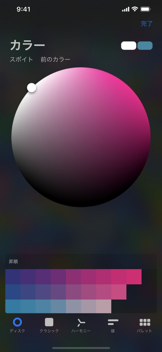 彩度ディスクをピンチアウトするとフルサイズに拡大できます。