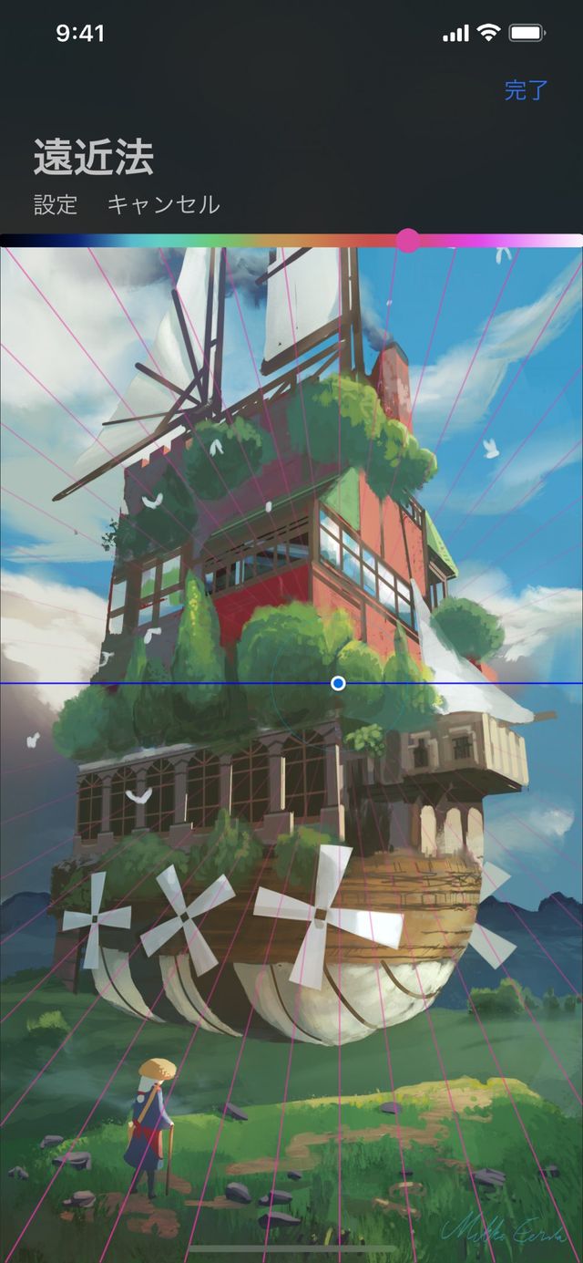 消失点を作成する任意の位置を画面上でタップします。消失点は 3 つまで作成できます。1 点透視法、2 点透視法、または 3 点透視法のオプションを選択できます。