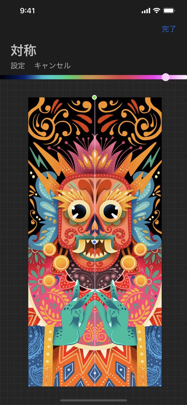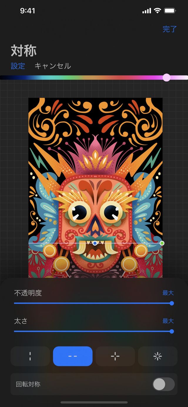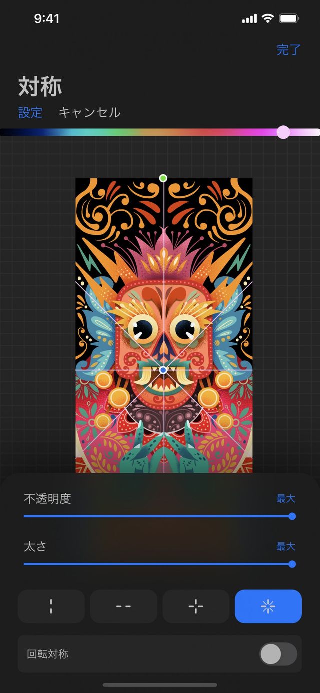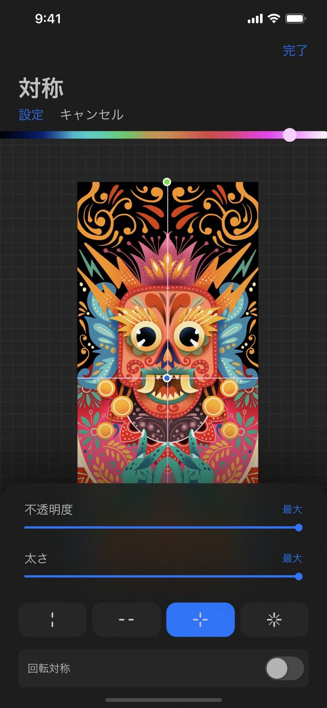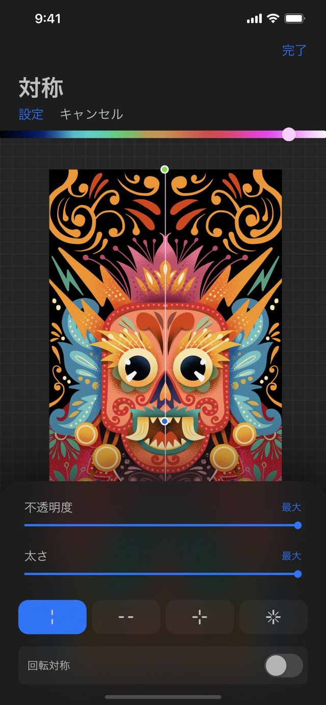 それぞれのモードを試して、効果の違いを確認してください。この 2 つの動作を切り替えるには、“回転対称” トグルをタップします。