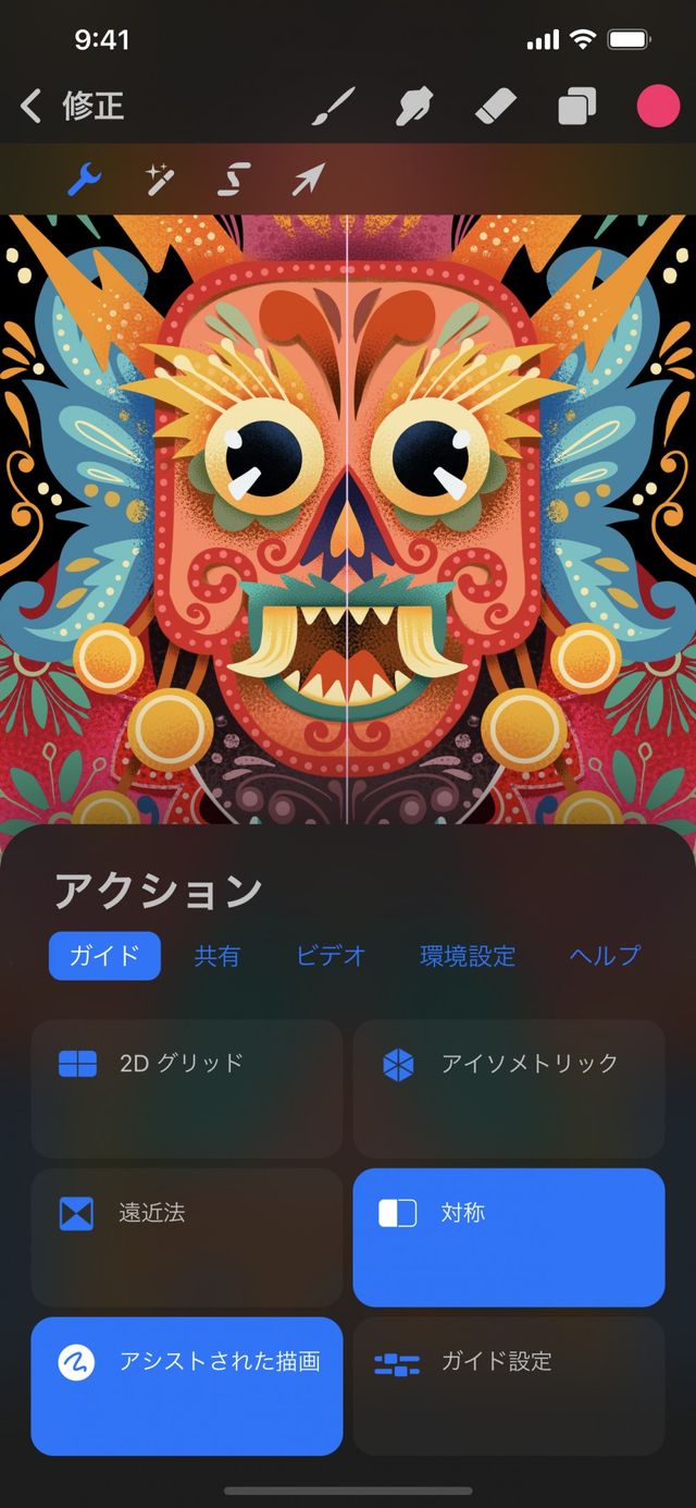 対称ガイドでは、アートの鏡像が複数の平面に描画され、驚くような効果が生まれます。