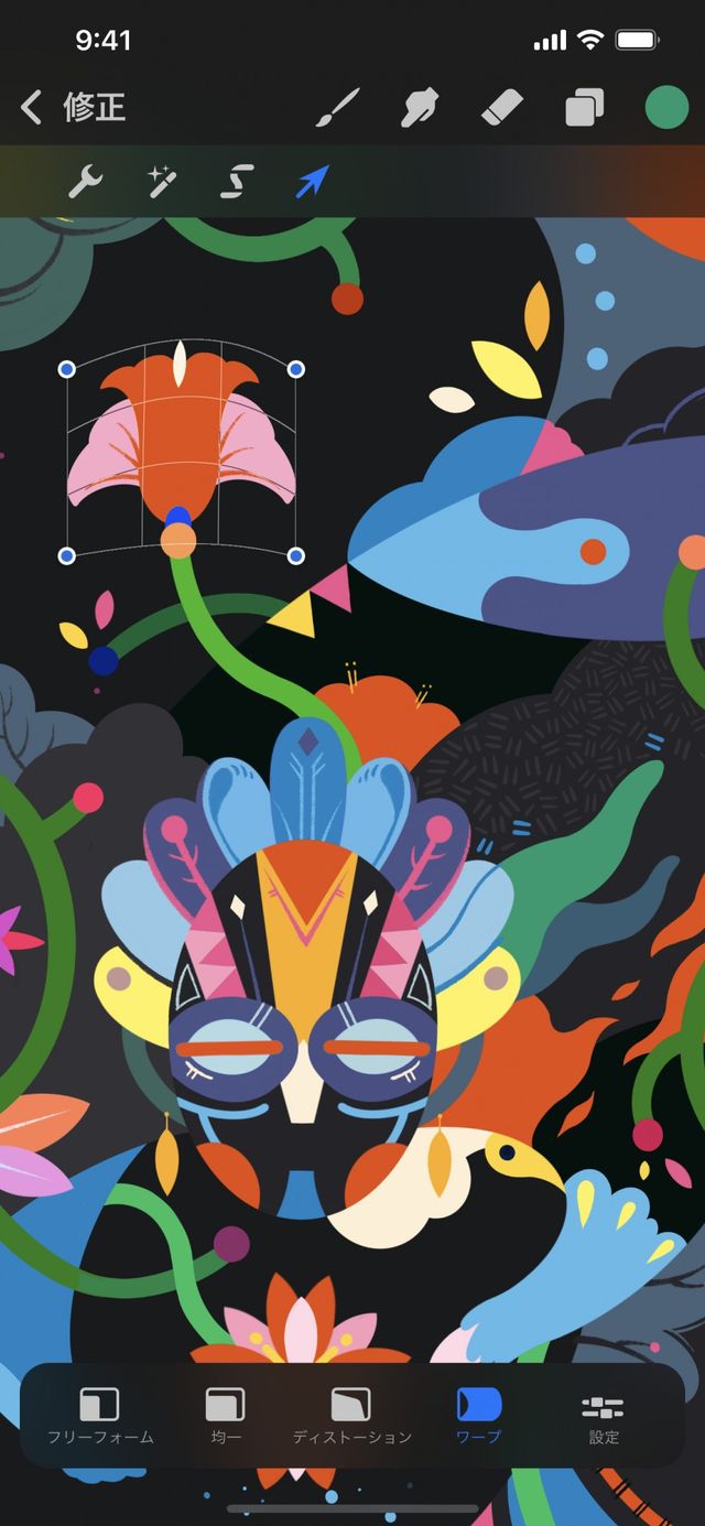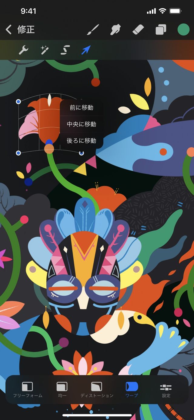 ワープを使用すると、アートワークを折り曲げたり歪めたりして、奇妙な次元にいるような効果を生み出すことができます。