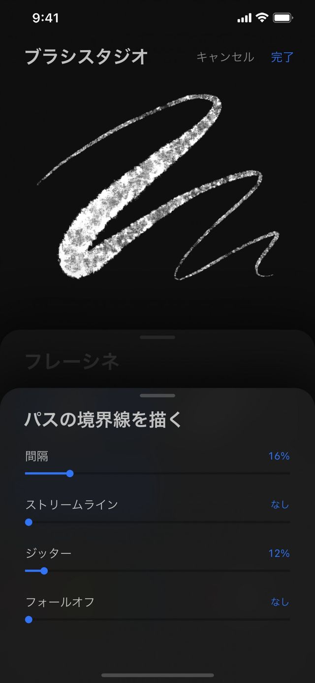 各設定カテゴリに含まれる複数のブラシ属性は、スライダやトグルなどのシンプルなコントロールで調整できます。