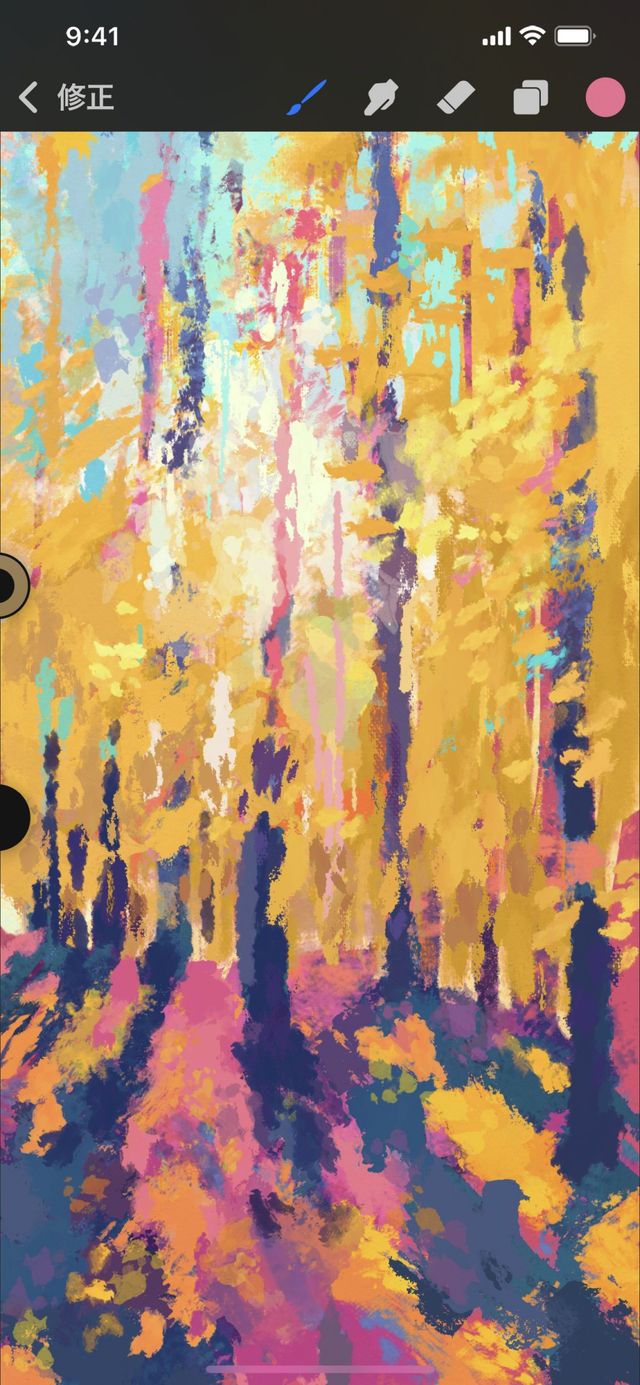 ブラシの中には、動かすスピードに応じてストロークが変化するものがあります。ペイントするときに指を動かすスピードを変えてみてください。