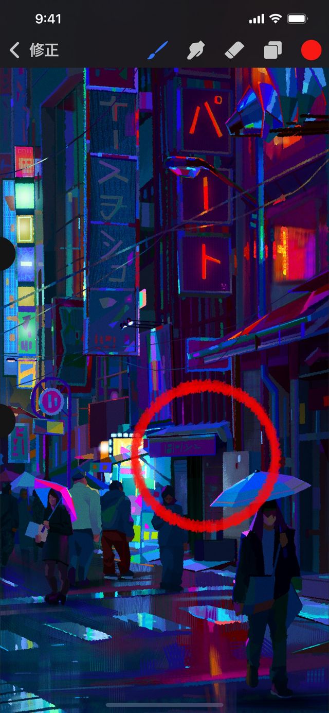指先で Procreate Pocket のキャンバスにペイントします。