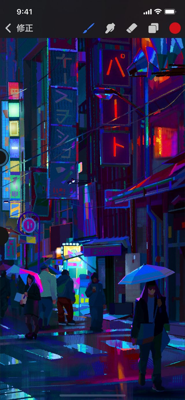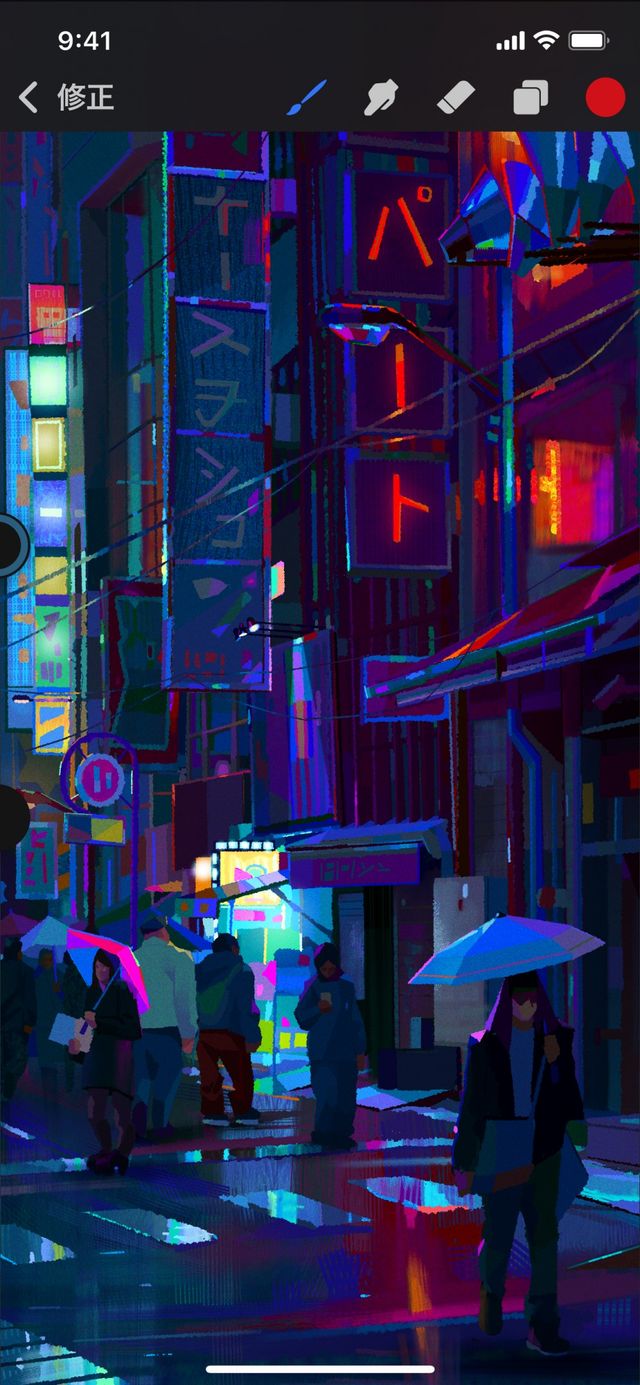 ペイント、ぼかし、消しゴムツールをタップしてから、キャンバスにタッチして作業を開始します。