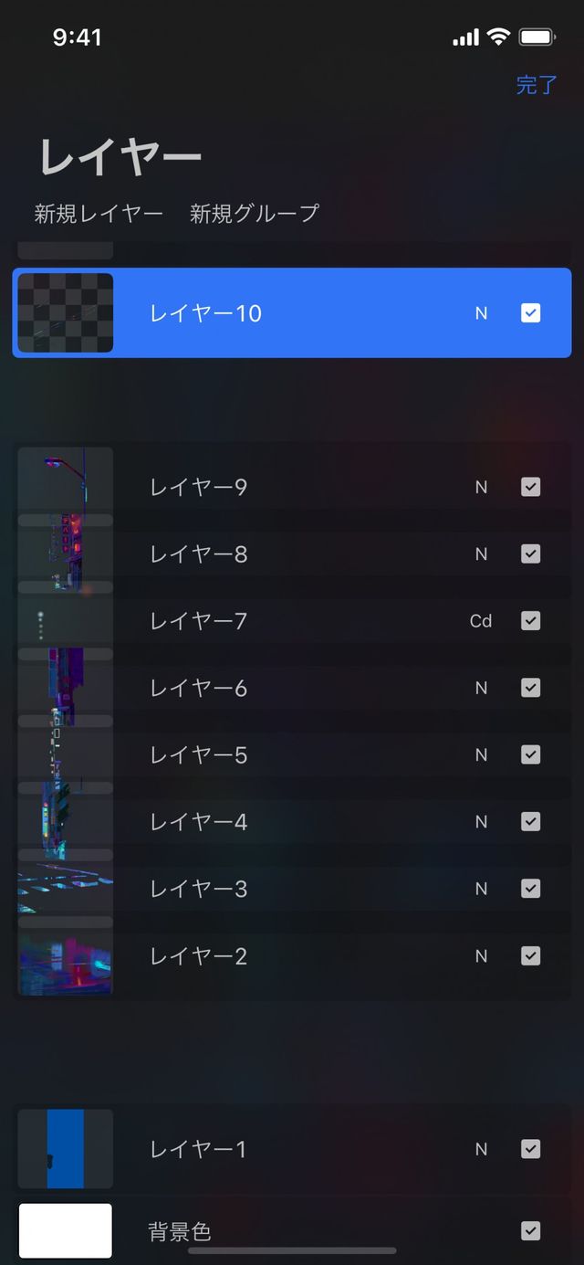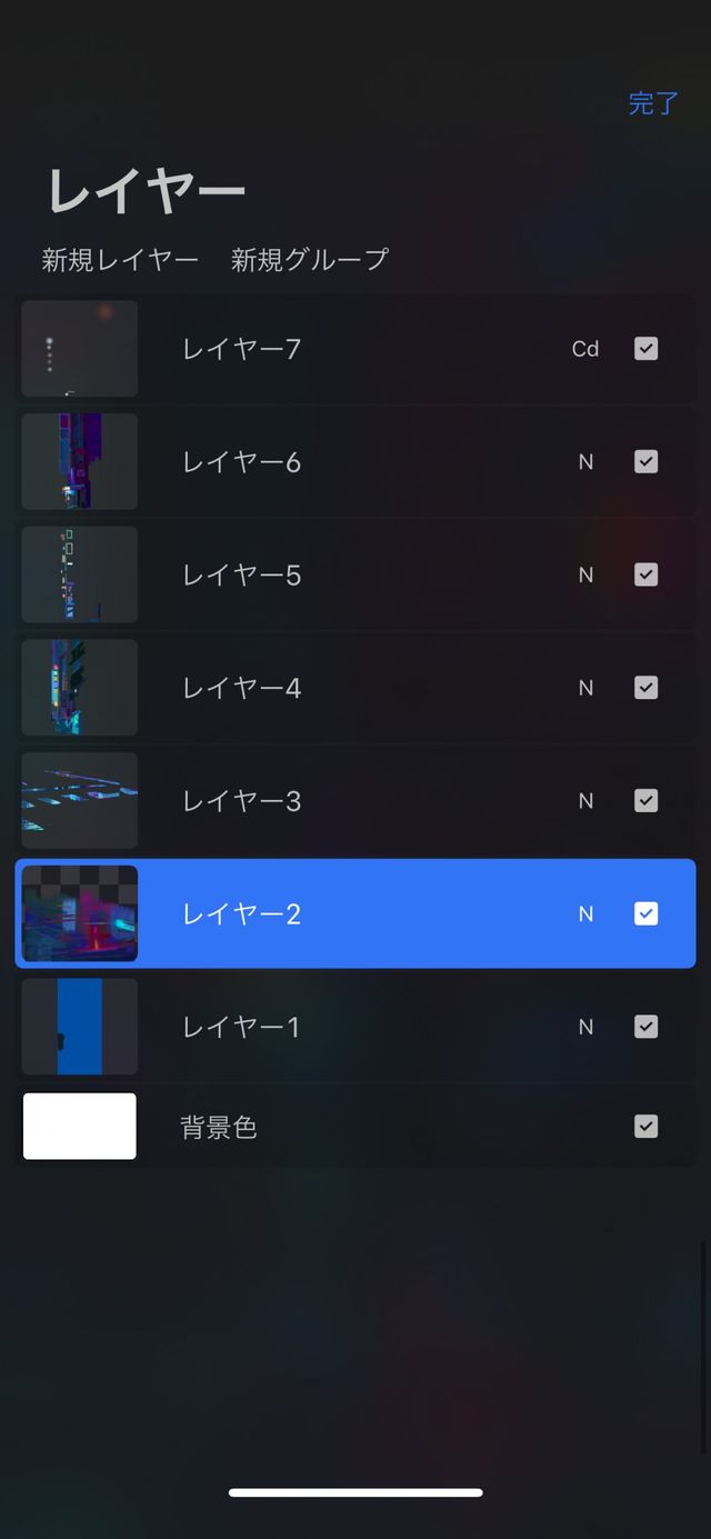 “レイヤー” パネルでいずれかのレイヤーをタップすると、そのレイヤーがアクティブになります。タップしたレイヤーの色が明るい青に変わり、メインレイヤーに設定されます。