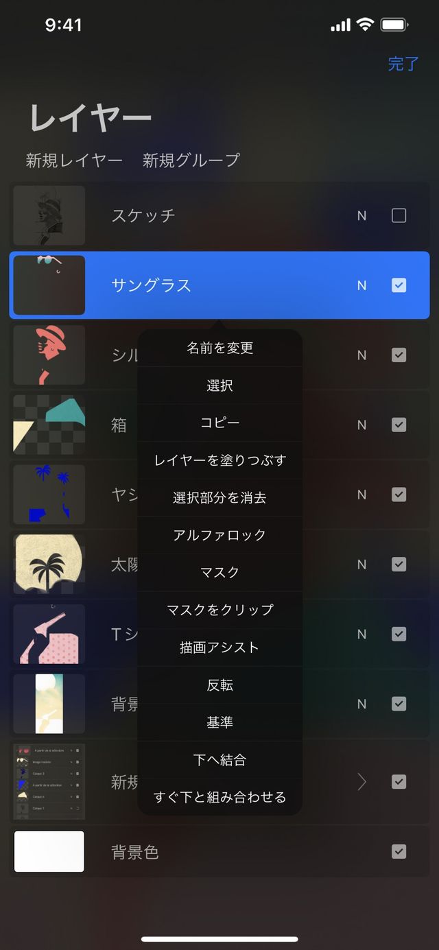 “レイヤー” パネルを開いたら、タップしてレイヤーを選択します。再度タップすると、レイヤーオプションメニューが表示されます。