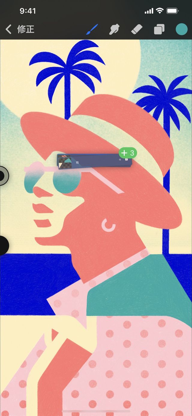 Procreate Pocket のドキュメントは、そのサイズに応じて使用できるレイヤーの最大数が決まります。最大レイヤー数に達したときは、いくつかのレイヤーを結合して、新規複製レイヤーのための空きを作ってください。