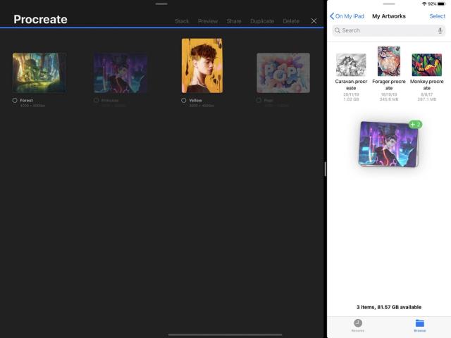 Drag artworks out of Procreate and into any other application to export them instantly.