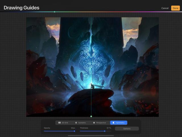 Symmetry guides mirror your art across multiple planes for mind-bending effects.