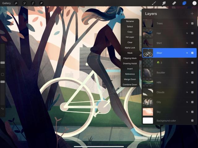 Once you have the Layers panel open, select a layer by tapping on it, and tap it again to access the Layer Options menu.