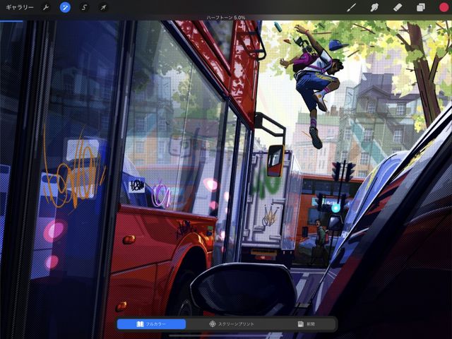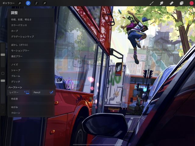 変更を確定してハーフトーンを表示したままにするには、キャンバスをタップして 調整アクション を呼び出し、“適用” をタップします。