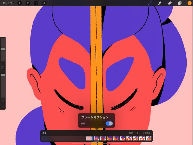 タイムラインで右端のフレームをタップして “フレームオプション” を表示します。“前景” トグルをタップします。