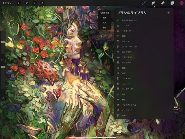 Procreate のデフォルトブラシセットの名前は変更できません。ただし、デフォルトブラシセットを複製して、コピーの名前を変更することは可能です。