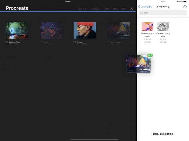 選択するファイルを押さえてつかみ、Procreate にドラッグします。
