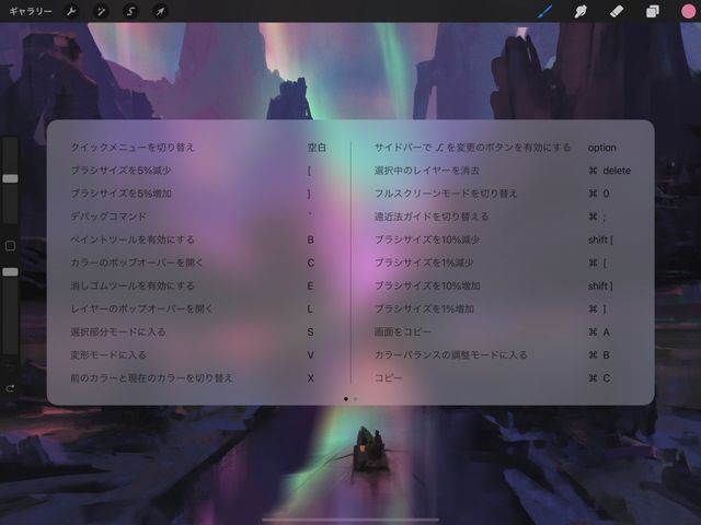 Procreate のキーボードショートカットは、他のイラストレーションソフトウェアで標準的に使われているショートカットに基づいています。