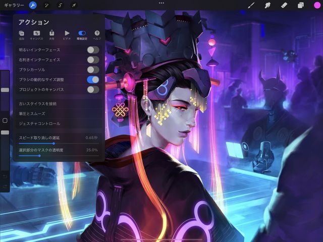 “ジェスチャコントロール” パネルで、Procreate 全体で使用する各種ツールのショートカットを変更できます。