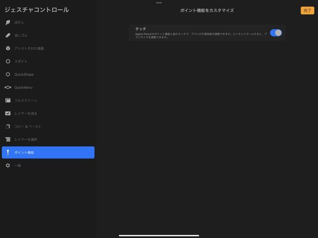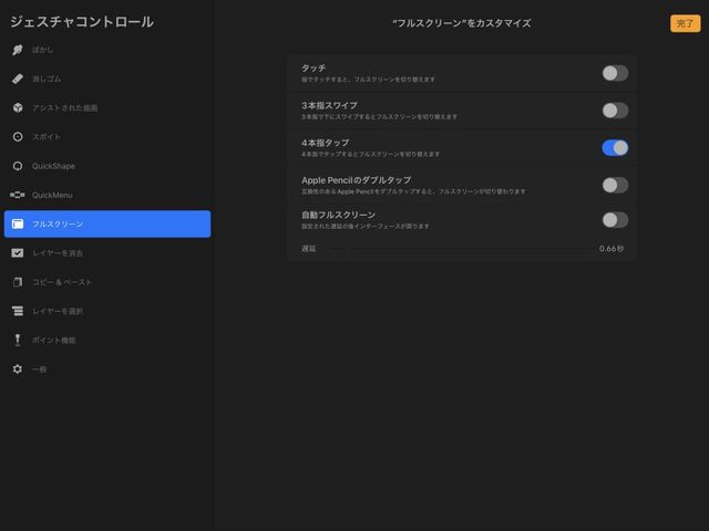 ジェスチャコントロールパネルの設定が完了したら、完了をタップしてキャンバスに戻ります。