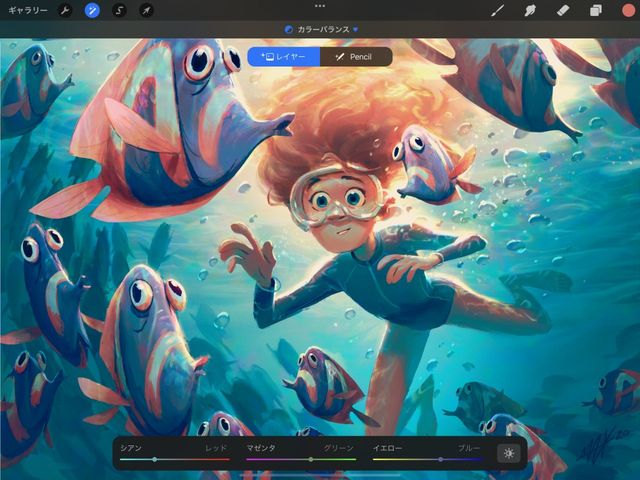 変更を確定して “カラーバランス” を表示したままにするには、キャンバスをタップして 調整アクション を呼び出し、“適用” をタップします。