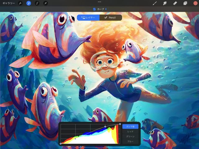 調整 > カーブ をタップして、カーブインターフェイスを呼び出します。