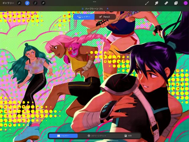 上部バーの % 記号の横にある小さな三角形をタップすると、“レイヤー” または “Pencil” を使用するためのオプションが表示されます。レイヤーボタンまたは Pencil ボタンをタップして、お好みのモードを選択できます。