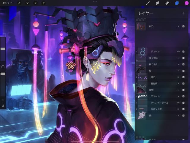 Procreate と Apple Pencil があれば、絵を描くのに指が不要になります。1 本指タップにショートカット QuickMenu を割り当て、空いた指を QuickMenu の呼び出しに使用しましょう。このようなタップやその他のマルチタッチショートカットは、 ジェスチャコントロール で変更できます。