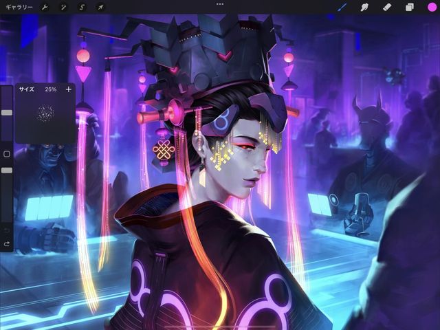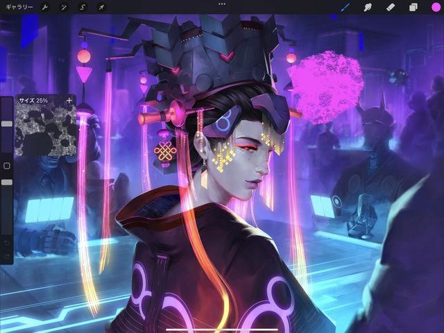Procreate は Apple Pencil のホバーをサポートしており、便利なブラシサイズと不透明度のジェスチャを使用してフローを維持できます。