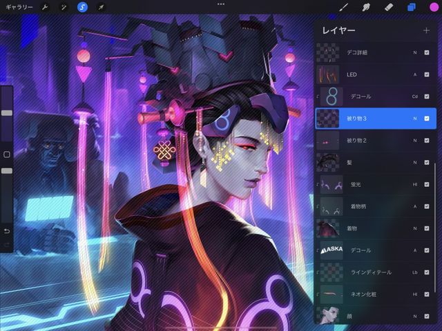 ロック後に描画またはペイントを行うと、そのレイヤー上の既存のアートワーク部分に対してのみ有効になります。透明な領域はマスクのように機能し、一切変更されなくなります。