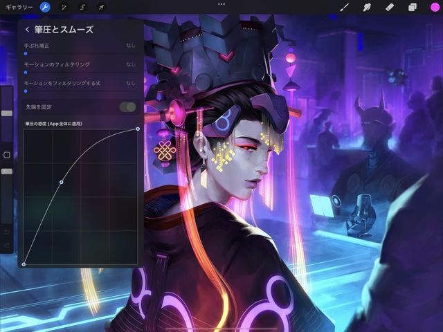 Procreate のカスタマイズ可能な “筆圧の感度” を使うと、Apple Pencil やスタイラスの使い心地を調整できます。お好みの筆圧感度を設定すれば Apple Pencil の性能を存分に発揮できます。