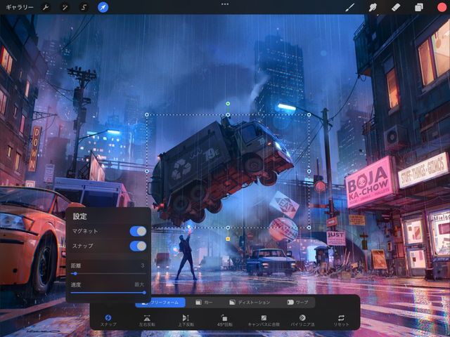 変形ツールバーの “スナップ” ボタンをタップして、オンとオフを切り替えます。